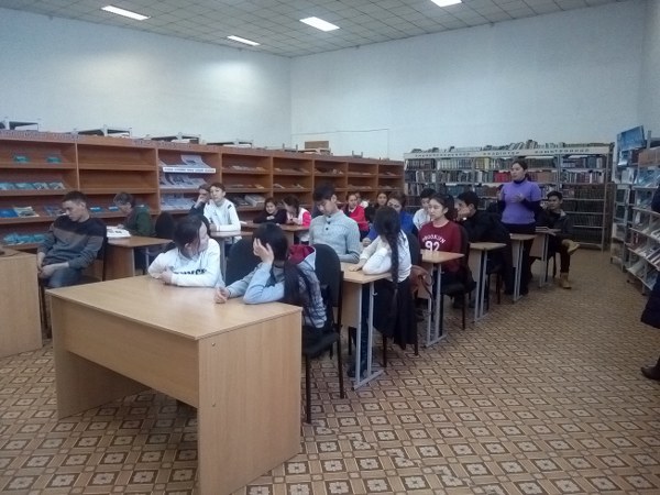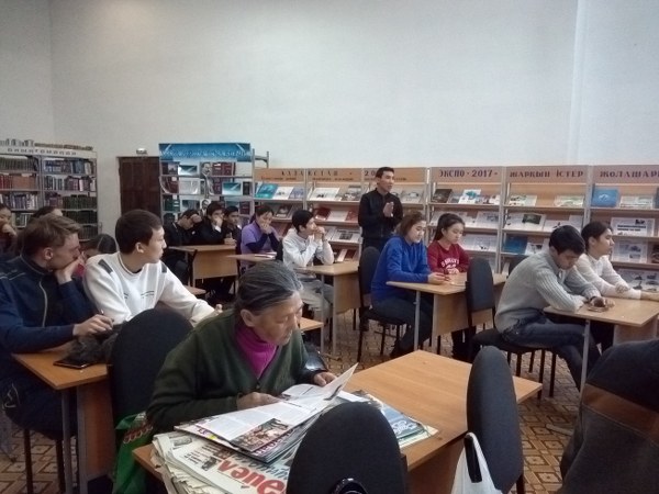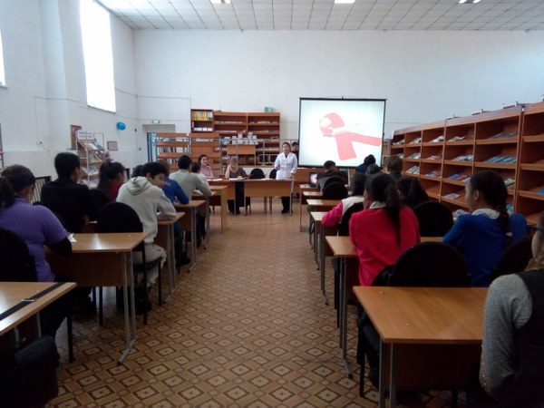 С.Сейфуллин атындағы кітапханада  оқушылар арасында  кездесетін өзекті мәселе зиянды әдеттердің алдын алу  және ЖИТС, АИВ тақырыптары бойынша   арнайы баяндамалар тыңдалды, бейне баяндар көрсетілді.