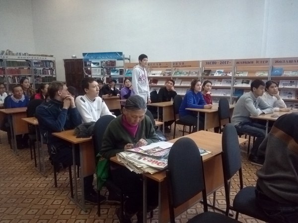 05.12.17 ж. Салауатты өмір салтын қалыптастыру, СЭС  және  жастар аудандық орталығы мен жастар арасында С.Сейфуллина атындағы кітапханада  студенттермен кездесу семинар-тренинг откізілді.