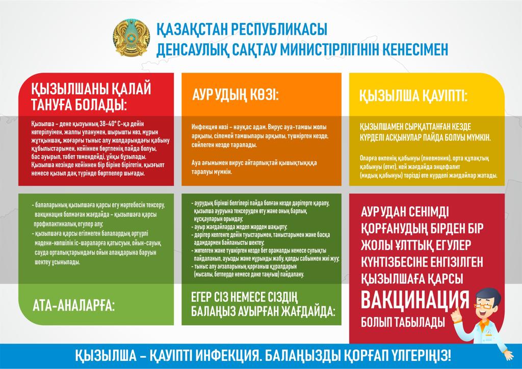 Құрметті ата-аналар! Соңғы айлары Қазақстанда қызылшамен сырқаттанушылық жағдайы тіркелген. Балаларыңызға мұқият болуды сұраймыз.
